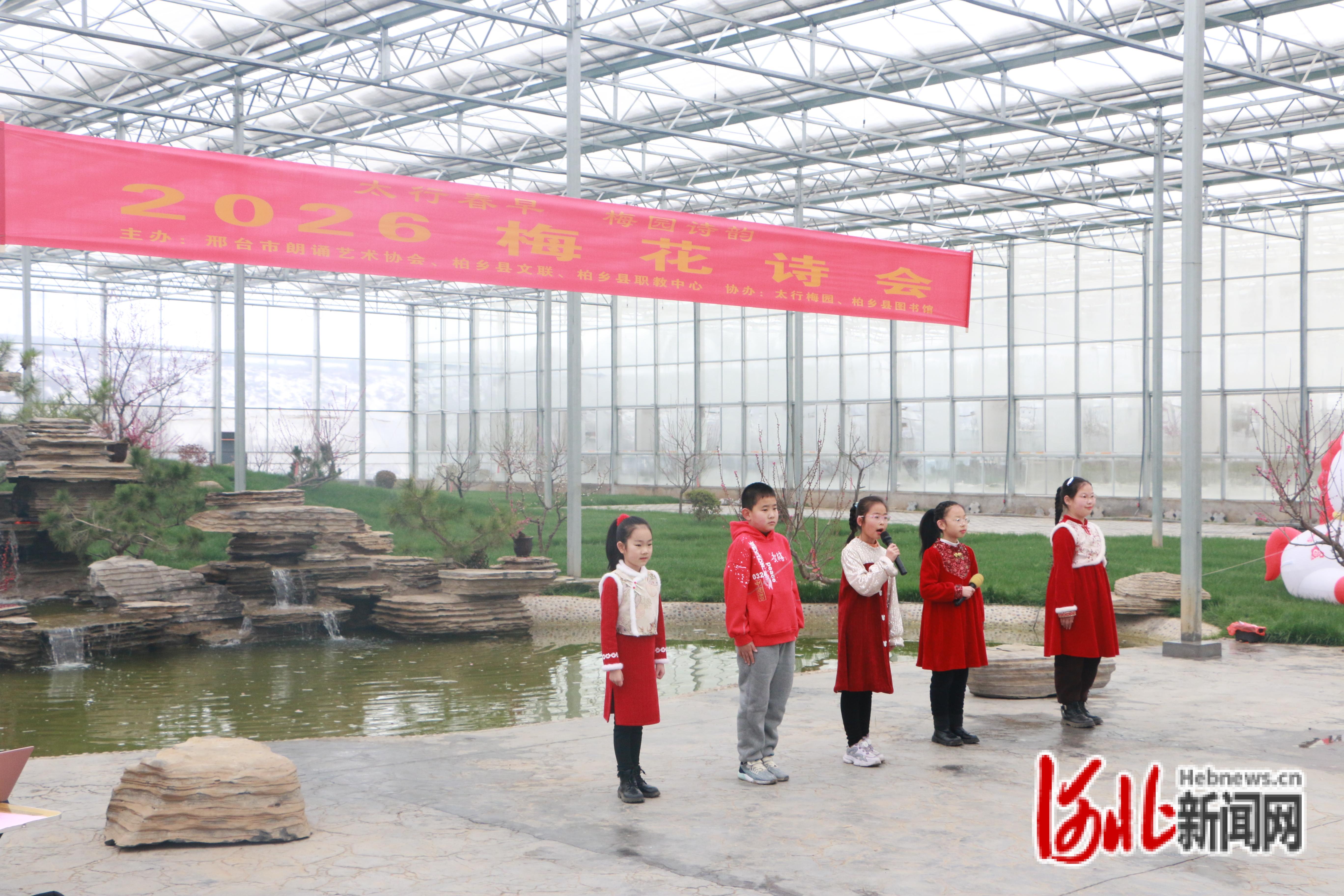 河北新闻网讯(肖戈)3月3日,由邢台市朗诵艺术协会、柏乡县文联、柏乡县职教中心共同主办,太行梅园、柏乡县图书馆协办的“太行春早梅园诗韵——2026梅花诗会”在柏乡县太行梅园四季展厅诗意启幕。