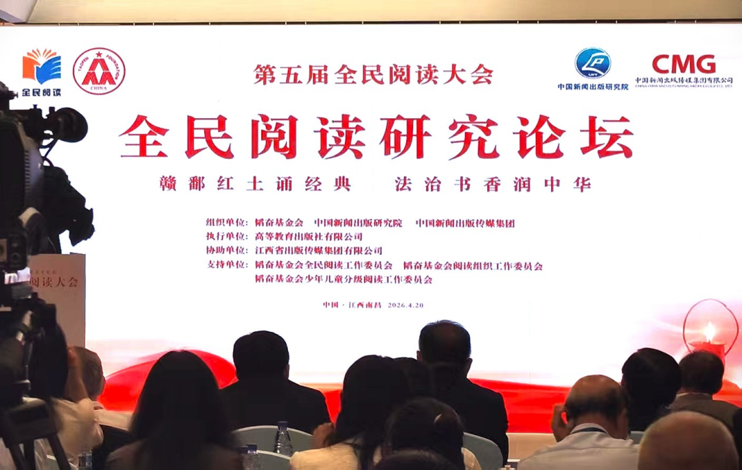 中国网讯 4月20日,第五届全民阅读大会·全民阅读研究论坛在江西南昌举办。全国政协副主席、民进中央常务副主席朱永新,江西省政协主席宋福龙,中国外文局局长常勃出席论坛并致辞,中国出版集团、中国教育出版传媒集团等单位负责人及全国出版、教育、学术、媒体界等百余位代表参加论坛,围绕全民阅读理论创新、红色基因出版转化、数智时代阅读服务等话题深入研讨交流。论坛以 “赣鄱红土诵经典,法治书香润中华” 为主题,由韬奋基金会、中国新闻出版研究院、中国新闻出版传媒集团等单位联合主办。